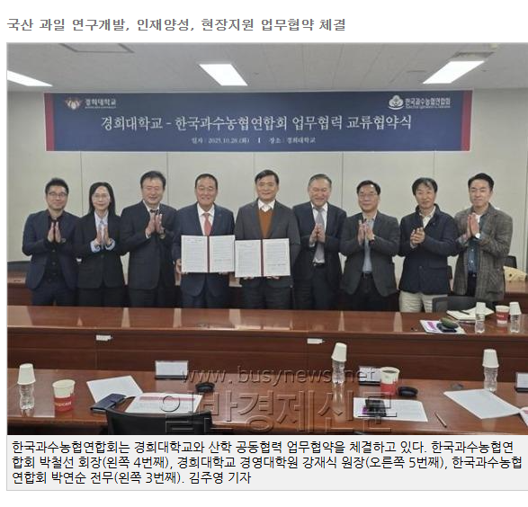 한국과수농협연합회–경희대학교, 산학협력 나서-일반경제신문